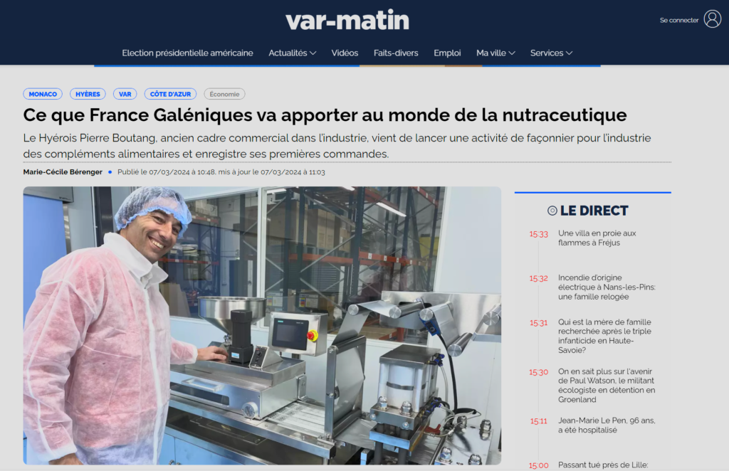 Basée à Hyères, France Galéniques s’appuie sur un site industriel de 400 m² équipé de machines de pointe pour le conditionnement de gélules et de blisters. L’entreprise répond à la forte croissance du marché français et européen des compléments alimentaires, tout en valorisant l’innovation et la qualité grâce à une équipe d’associés locaux engagés